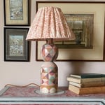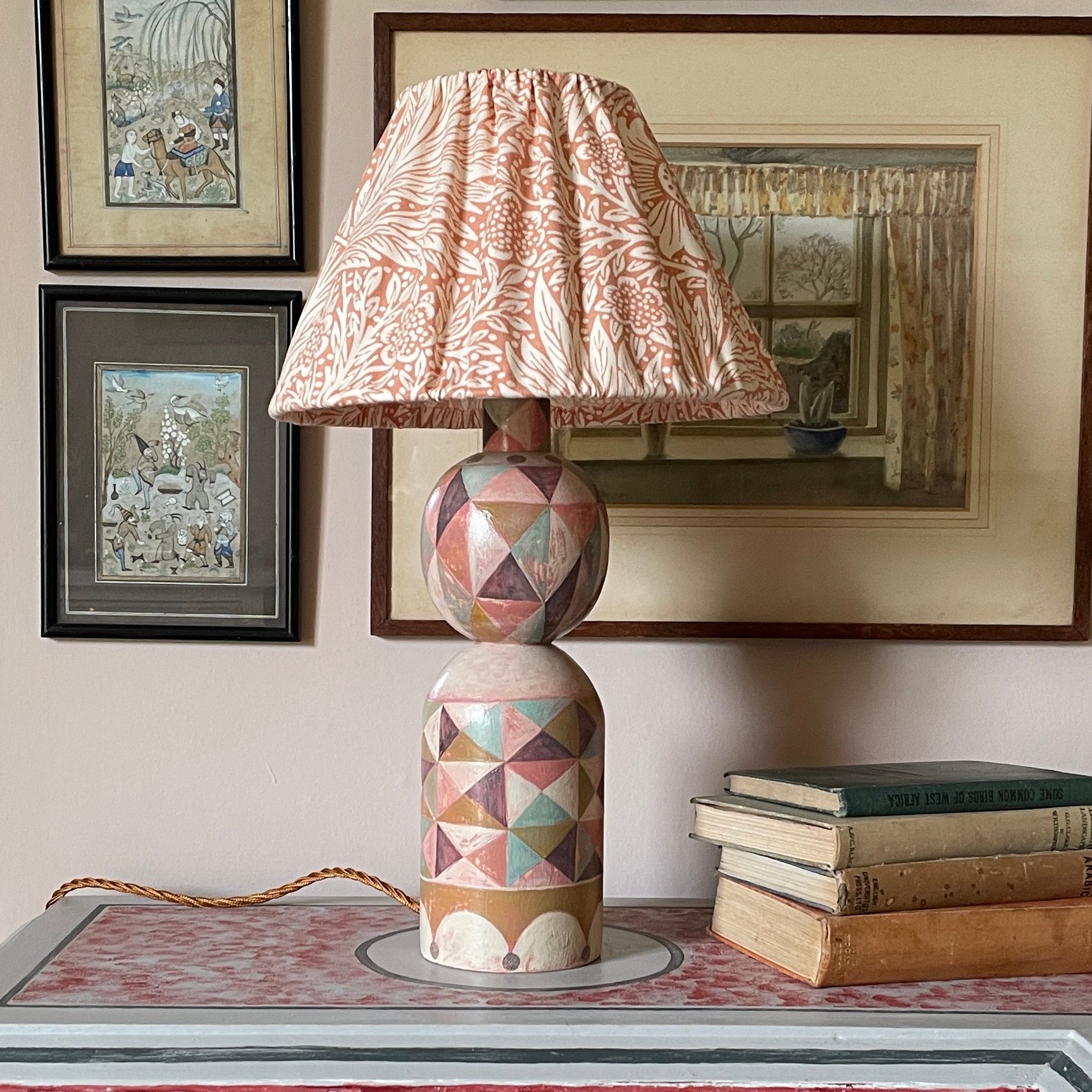Tall solid beech table lamp hand painted with chalk paint in geometric pattern.